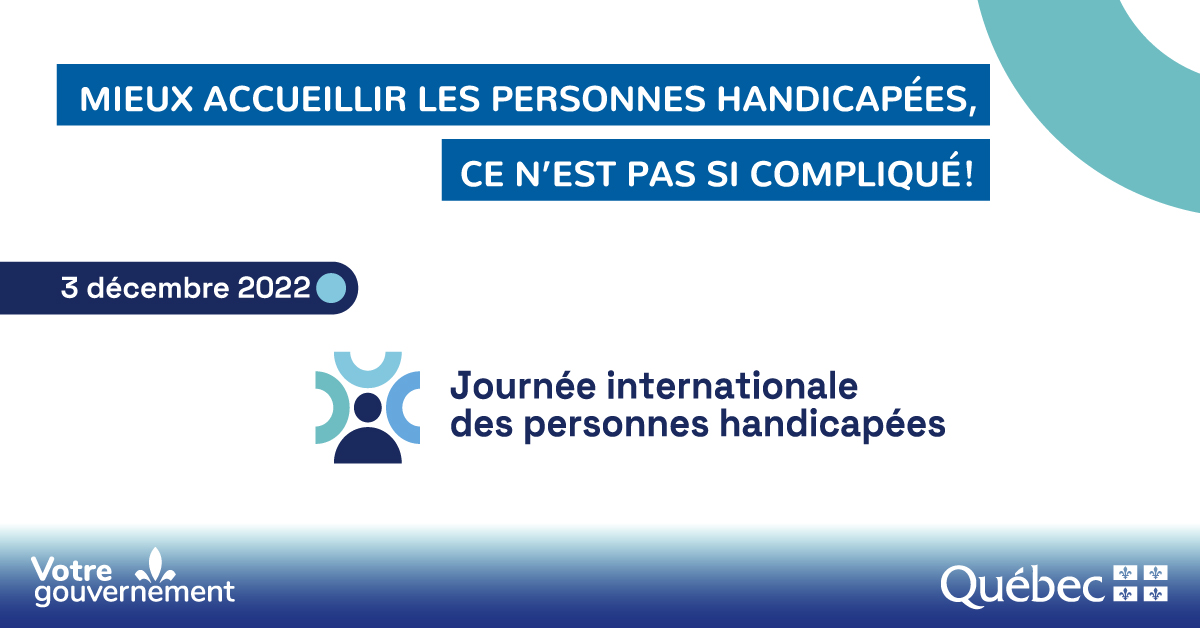 Le 3 décembre aura lieu la Journée internationale des personnes handicapées. De petits gestes peuvent faire une grande différence pour favoriser la participation sociale des personnes handicapées. Apprenez-en davantage en visitant le www.ophq.gouv.qc.ca/jiph #JIPH2022.