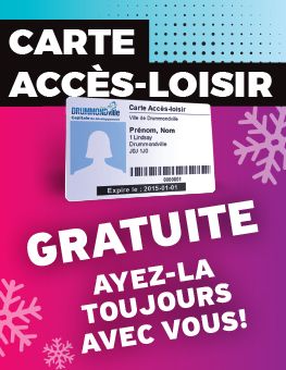 Bonne nouvelle! Toute personne ou tout groupe de personnes de résidant pas dans la MRC de Drummond peut accéder à l'une ou l'autre des activités identifiées ci-dessus aux mêmes tarifs qu'un détenteur de la carte Accès-loisir à condition d'être accompagné d'une personne possédant elle-même une carte Accès-loisir.